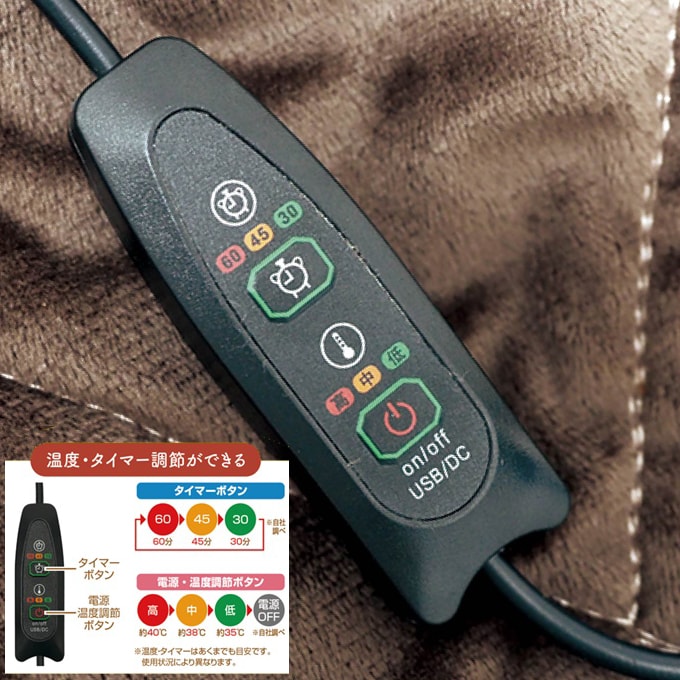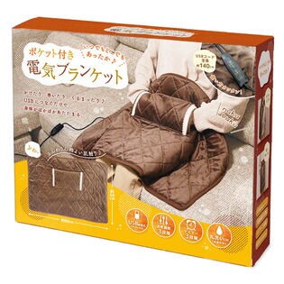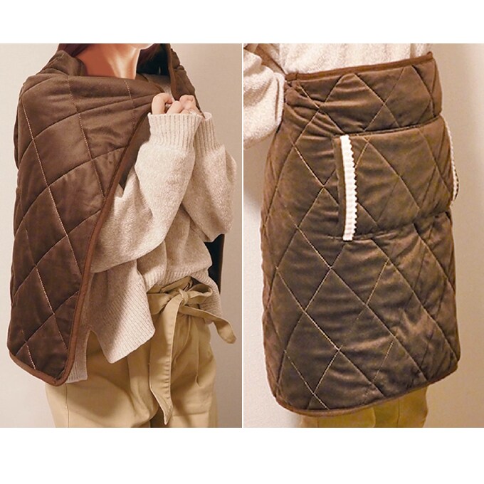 温度調節は3段階。掛けたり、巻いたり、くるまったり♪ポケットがついているので、冷えがちな手先がぬくぬく。