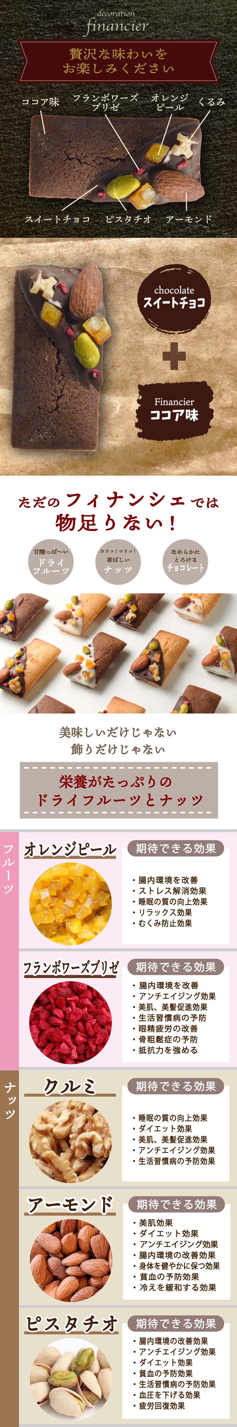 【計16袋/ココア】デコレーションフィナンシェココア(スィートチョコ)【個包装】1袋当たり約35g | ギフトにも最適なおしゃれなスイーツ♪ドライフルーツやナッツの奥深い味わいがふんわり広がる!