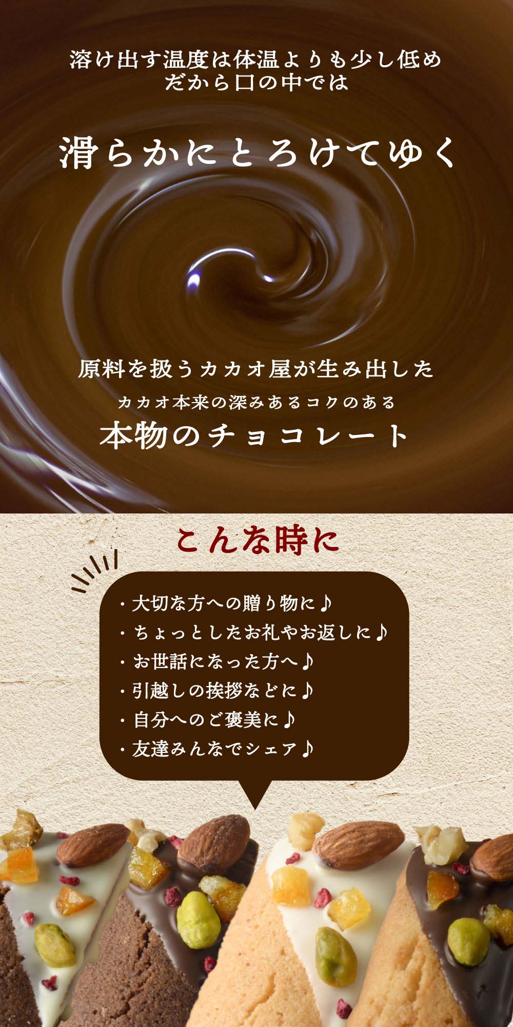 ・原材料/材質/素材:原材料名 卵(国産)、砂糖、アーモンドプードル、バター、チョコレート(砂糖、植物油脂、ココアパウダー、カカオマス)、米粉、アーモンド、ココア、オレンジピール(オレンジピール、ぶどう糖果糖液糖、砂糖)、ピスタチオ、くるみ、乾燥フランボワーズ/乳化剤、香料、漂白剤(亜硫酸塩)、(一部に卵・乳成分・くるみ・大豆・アーモンド・オレンジを含む)