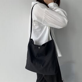 - 【ブラック】斜め掛けも出来るシンプルナイロントート