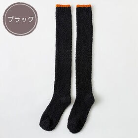 - 【ブラック】ニーハイ ルームソックス もこもこ 冬 暖かい オーバーニー ハイソックス