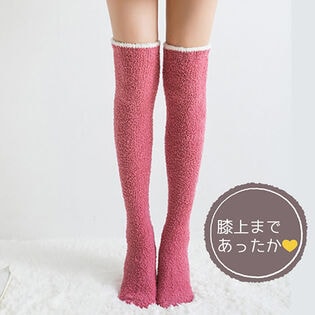 - 【マゼンタ】ニーハイ ルームソックス もこもこ 冬 暖かい オーバーニー ハイソックス