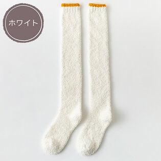 - 【ホワイト】ニーハイ ルームソックス もこもこ 冬 暖かい オーバーニー ハイソックス