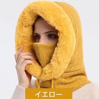 - 【イエロー】ニットフードウォーマー ネックウォーマー フェイスマスク キャップ レディース ボア
