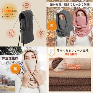 - 【グレー】フードウォーマー ネックウォーマー フェイスマスク キャップ レディース メンズ