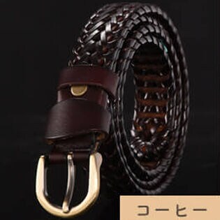 - 【コーヒー・女性用110cm】メッシュ レザー ベルト 編み込み 牛革 革 ベルト ビジネス
