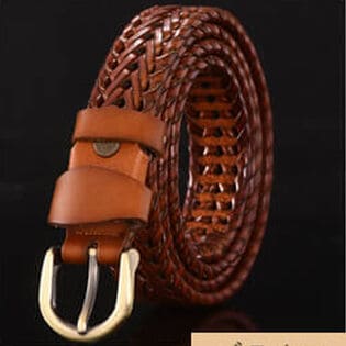 - 【ブラウン・女性用110cm】メッシュ レザー ベルト 編み込み 牛革 革 ベルト ビジネス