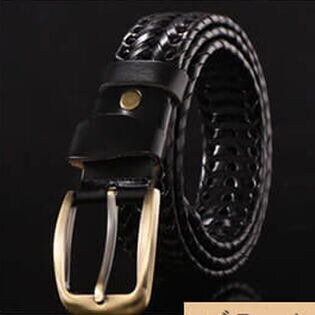 - 【ブラック・男性用120cm】メッシュ レザー ベルト 編み込み 牛革 革 ベルト ビジネス