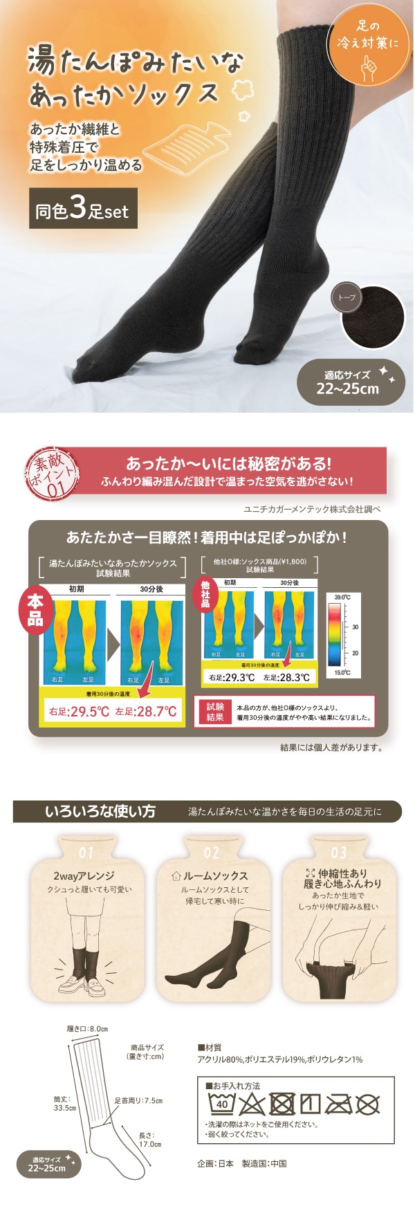 - 湯たんぽみたいなあったかソックス3足