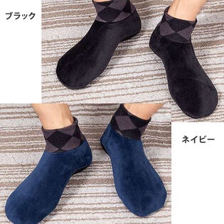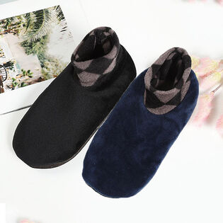 - 【2足セット(ブラック×ネイビー)】スタイリッシュフリース調チェックルームシューズ
