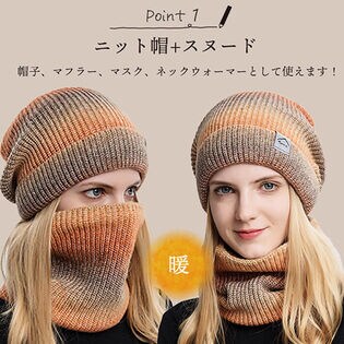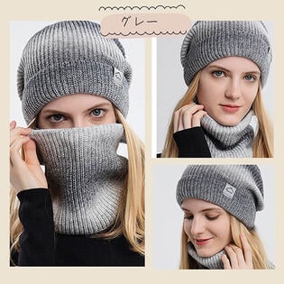 - 【グレー】レディース ニット帽 スヌード2点セット 秋冬