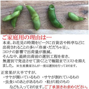 ・当商品は無選別品となります。生産農家が一度選別を行っておりますが、最終出荷前の選別工程を経ていない商品となり、 サヤが開いているもの、サヤが割れているもの、虫食いあとがあるもの、粒が1粒のもの、粒が抜けているものなども含まれております。