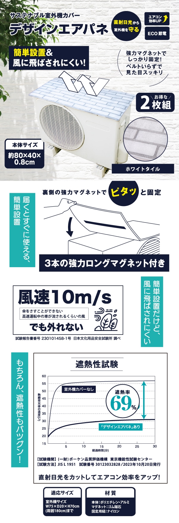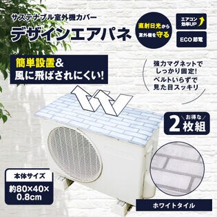 【2枚組/ホワイトタイル】サステナブル室外機カバー デザインエアパネ | 直射日光から守る!簡単設置、マグネットで飛ばされにくくECO節電!!
