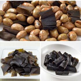 昆布(北海道産)、砂糖(北海道産)、昆布醤油(こいくちしょうゆ、三温糖、醸造酢、昆布だし、かつおだし、しいたけだし、オリゴ糖)、醸造酢、酵母エキス、(一部に小麦・大豆を含む)