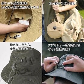 帽子全体に撥水加工が施されており突然の雨でも安心です。