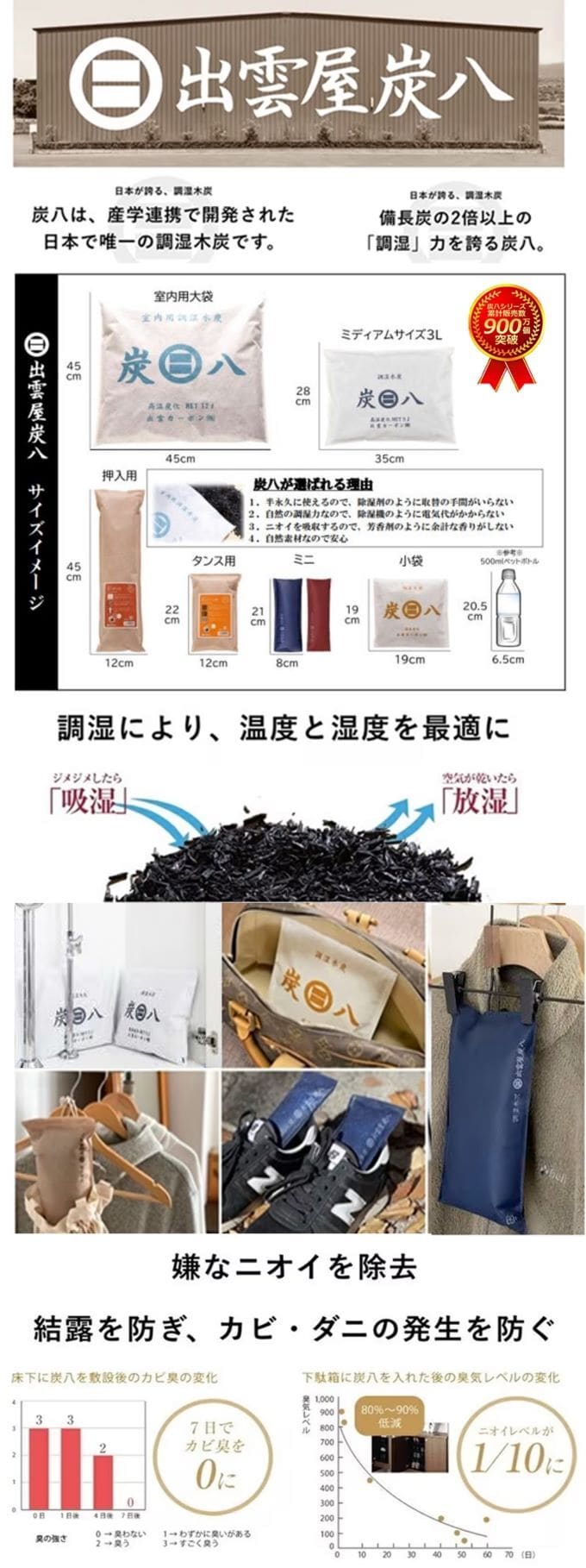 調湿木炭「炭八」ミディアムサイズ3L×5袋、スマート小袋×2...6980円 -