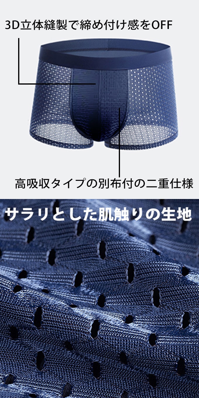 - 【Mサイズ】メッシュボクサーパンツ3色セット
