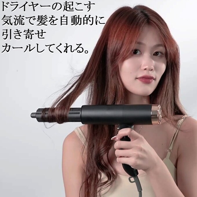 気流で髪を自動的に引き寄せカールしてくれるので、巻き髪スタイルも簡単にスタイリングできます。