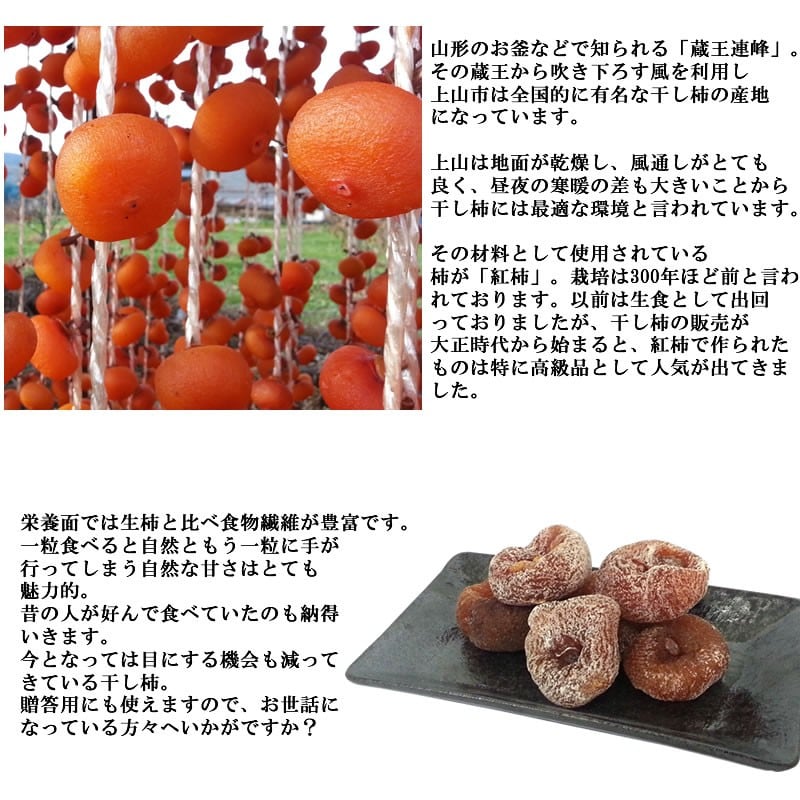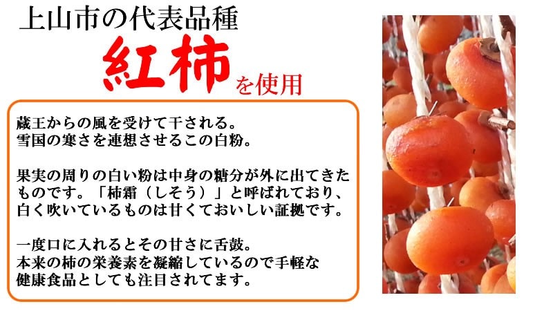 【300g (150g(5〜7玉)×2パック】山形県上山市産 干し柿 | 手作業で丁寧に干した紅柿!蔵王連峰から吹き降ろす風が、上質な甘みと弾力のある果肉を育みます