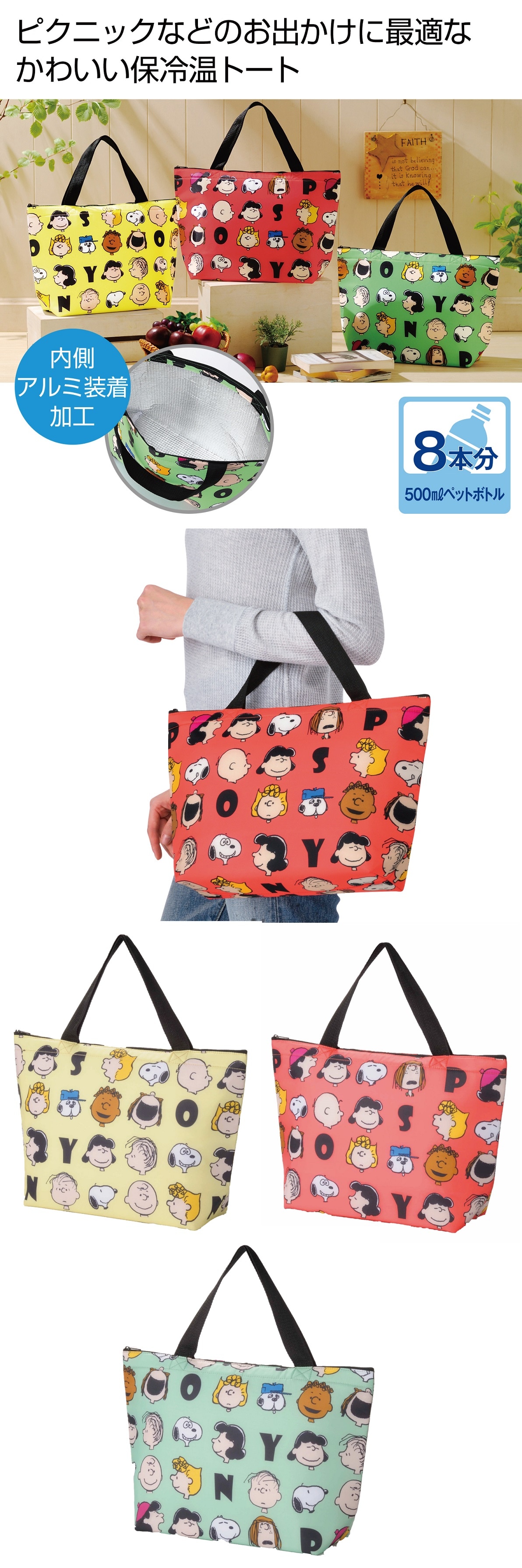 【2個セット】スヌーピー保冷保温BIGトート/ペットボトルが約8本入る! | 内部の温度を保つアルミ蒸着フィルム貼り!飲み物や食材を入れたり、アウトドアシーンで大活躍!