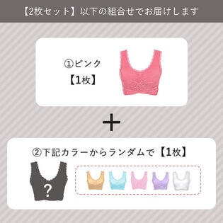 - 【2枚組/ピンク×おまかせカラー/XLサイズ】ラクブラ24育盛クロスアップブラ|ナイトブラ