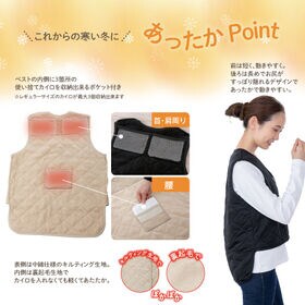 - 【M-L/ベージュ】カイロポケット付きあったかキルティングベスト