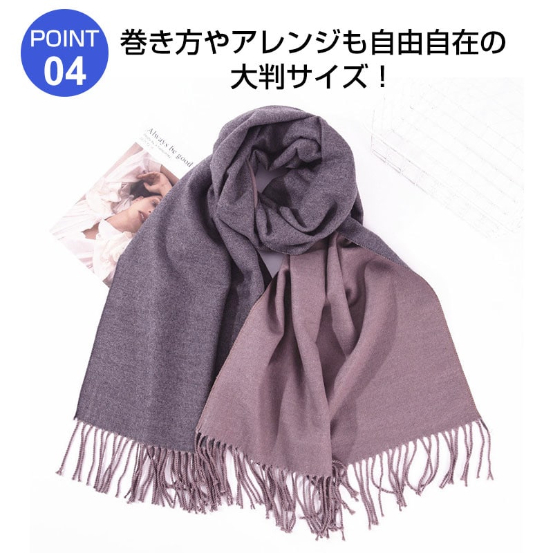 巻き方やアレンジも自由自在の大判サイズ!厚過ぎないほどよい生地感でいつものコーデにプラスするだけで、洗練されたコーデに!