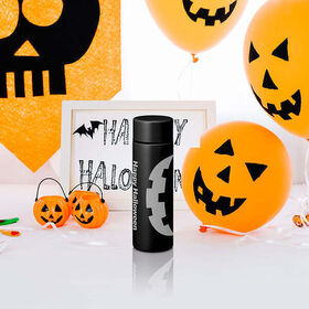 「ジャック・オー・ランタン」の口元のデザインが映える!水筒を口元に持ってくるだけでコスプレ気分!シックでかっこいいブラックカラーのミニ水筒。