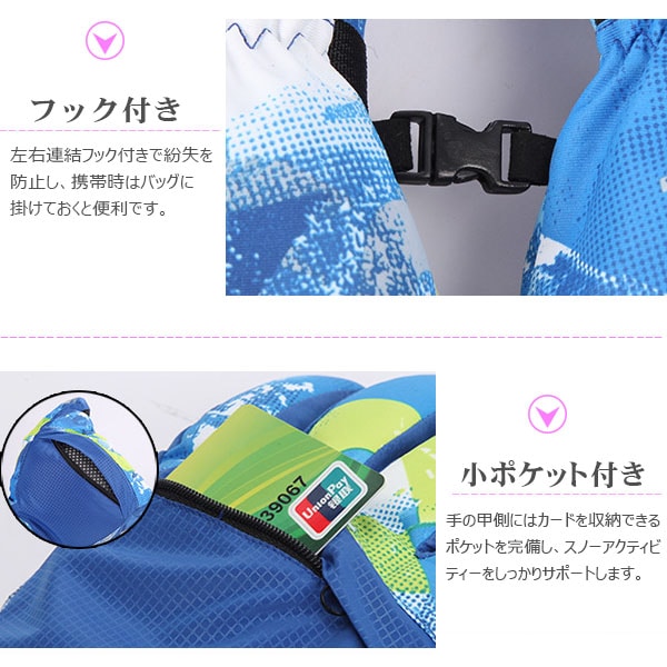 手の甲側にはカードを収納できるポケットを完備し、スノーアクティビティーをしっかりサポートします!