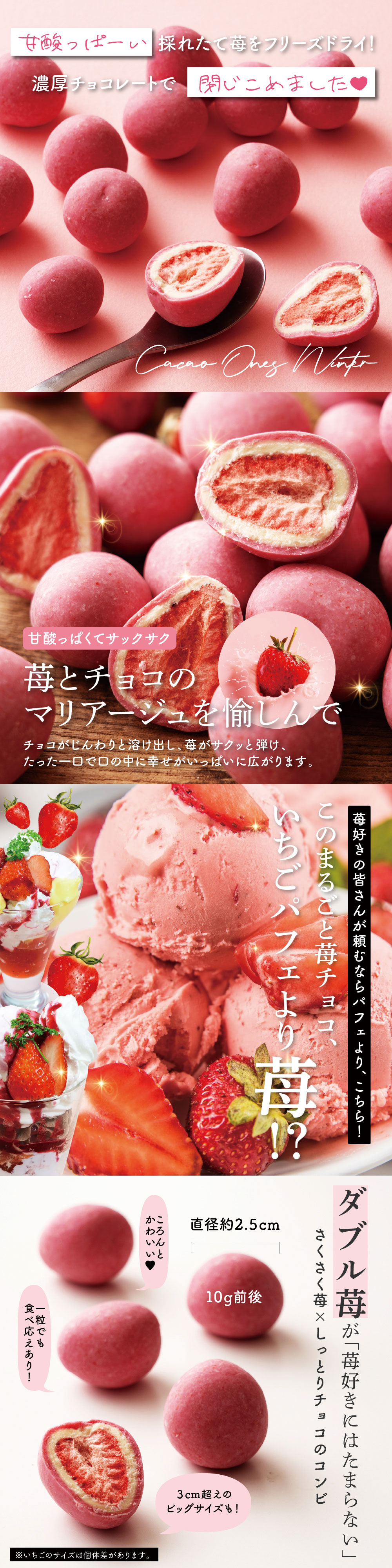 ・原材料/材質/素材:準チョコレート(国内製造(砂糖、植物油脂、乳糖、全粉乳、ココアバター、その他))、乾燥イチゴ/アカビート色素、乳化剤、香料(一部に大豆・乳成分を含む)