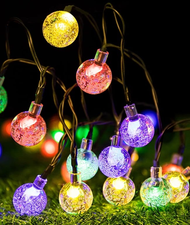 20個の電球が夜間になると自動にぴかっと光を放ちます。