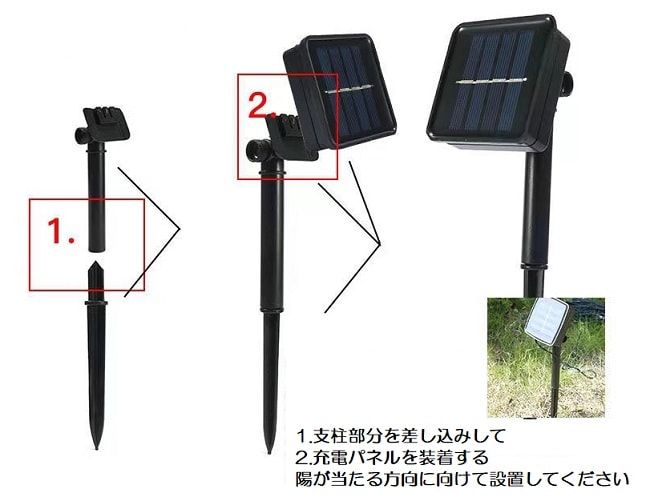 ソーラーパネルを太陽に当てて使用してください。