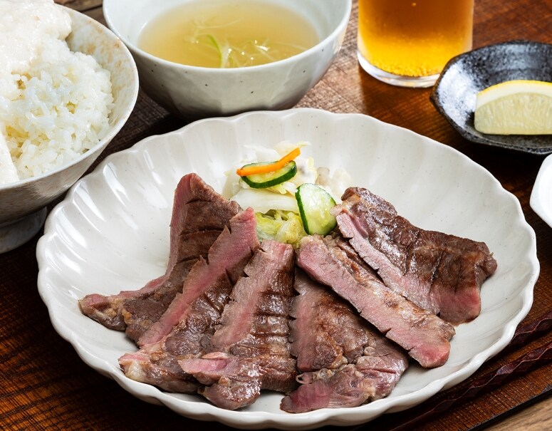 厚みがあるため肉質をしっかりと感じられつつ、牛タンの中でもやわらかい部位『タン元〜タン中』を使い、サクッと噛み切れるやわらかな食感も堪能できます。