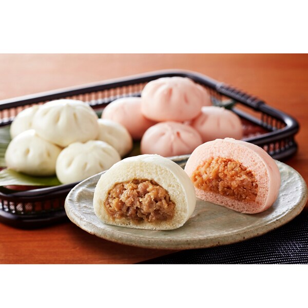 豚肉と玉ねぎなどを使い、ふっくらとした皮に包み込んだぶたまんと、辛子めんたいこのつぶつぶを加えた辛子めんたいこぶたまんのセットです。