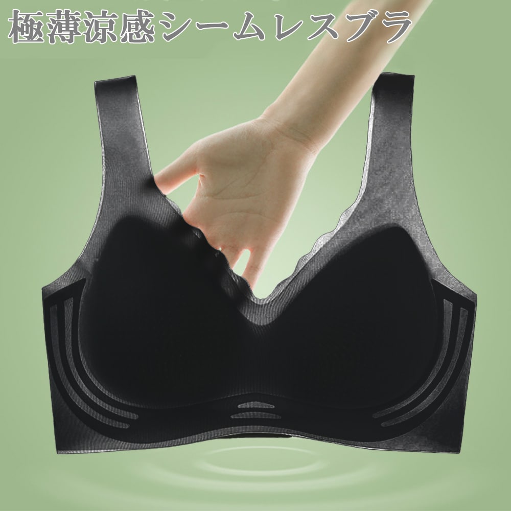 - 【Lサイズ/ブラック】極薄涼感シームレスブラ