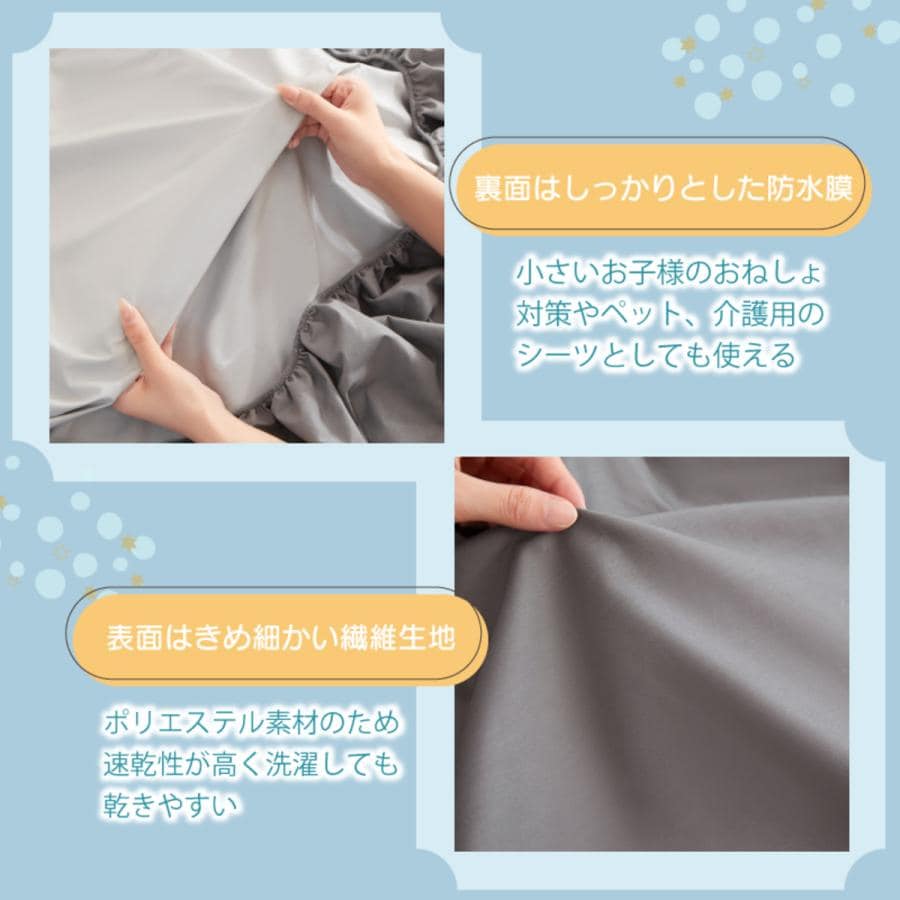 - 【シングル/シルバーグレー】五面防水ボックスシーツ