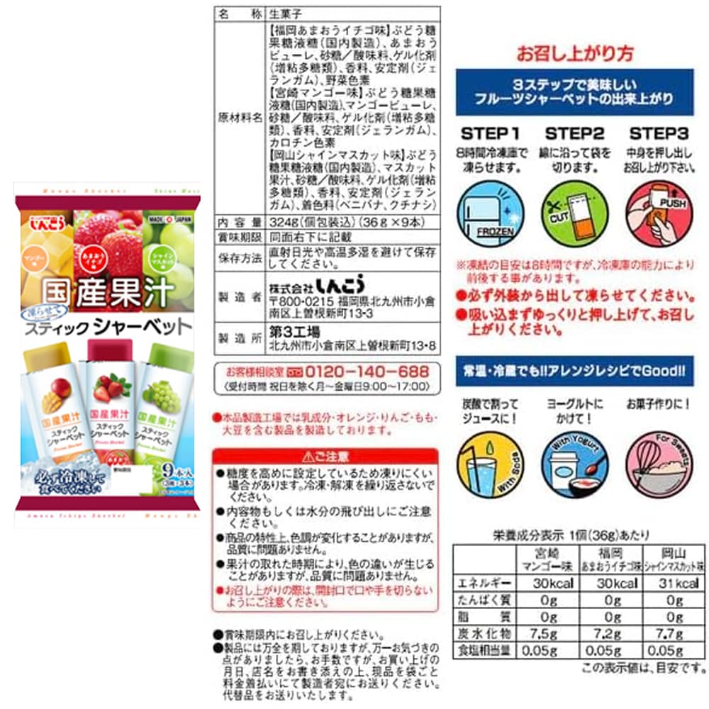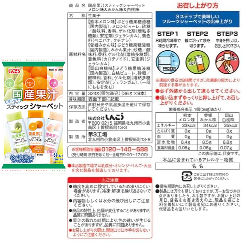 - 【計18本/6種×各3本】しんこう スティックシャーベット6種アソート