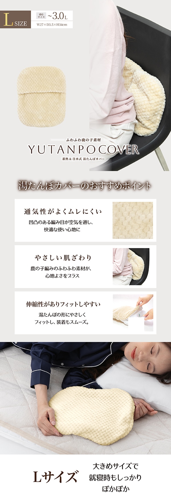 - 【ベージュ/Lサイズ/ノーマルタイプ】湯たんぽ専用カバー