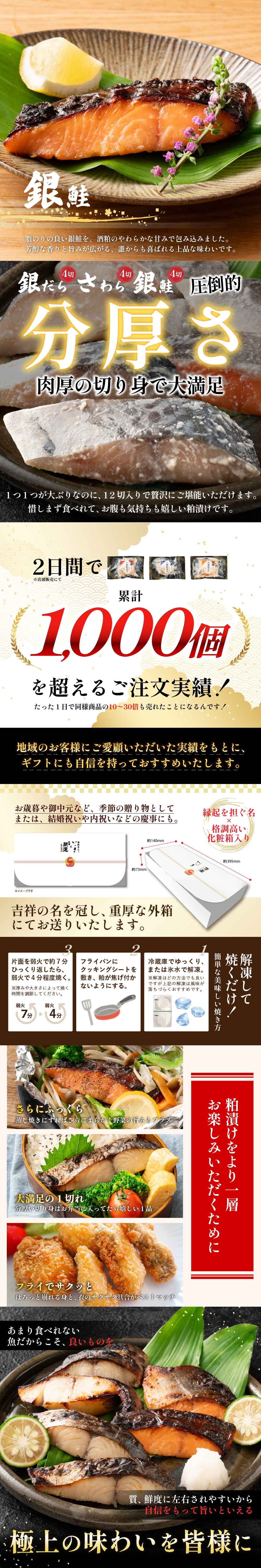 - 【3種/12切入】 銀鱈 さわら 銀鮭 吟醸粕漬けギフトBOX
