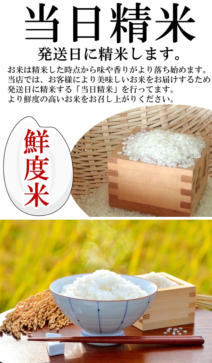そんなお米を精米した日に発送することで鮮度抜群の状態で味わうことが出来るでしょう。是非、旨味をご堪能ください。