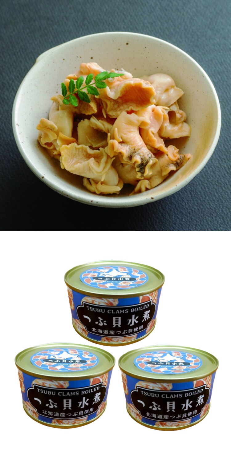 - 【3缶セット】北海道産 つぶ貝水煮(内容総量150g 固形量85g)