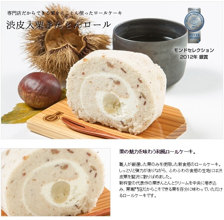 栗を使用すると、通常のレシピでは硬くなりますが、職人の経験、そして洋菓子・和菓子の製造技術を集結し完成したロールケーキです。