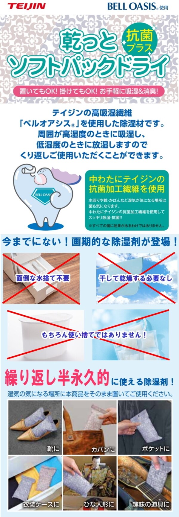 【大サイズ/4個セット】テイジン 新ソフトパックドライ 抗菌プラス | 長期保管する大切なものを湿気・ニオイから守る!水捨て・乾燥不要で半永久使用可能!