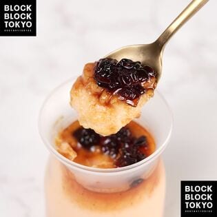 口の中でシャリッとしたカラメルと絡み合う、滑らかでしっとりした舌触りの濃厚なプディング生地とのマリアージュをお楽しみください。パティシエが作る口溶けの良いしっとりした食感のプディング生地に上から細かく割ったカラメルをセット、冷蔵庫で数刻馴染ませてカラメルが生地に半分溶け混んだ「ジャリッとろっ」状態でおめしあがり頂く食べ方がおすすめです。老若男女誰もがホッと安心できる懐かしさすら感じる美味しさを提供します。食感と風味を重視して上品に仕上げた味わいをお楽しみください。BLOCK BLOCK TOKYOの逸品、ミルクティなどと一緒にお召し上がりいただくのもおすすめです。