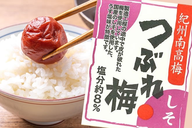 製造過程の途中で皮が破けたり少しつぶれた紀州南高梅を使用。