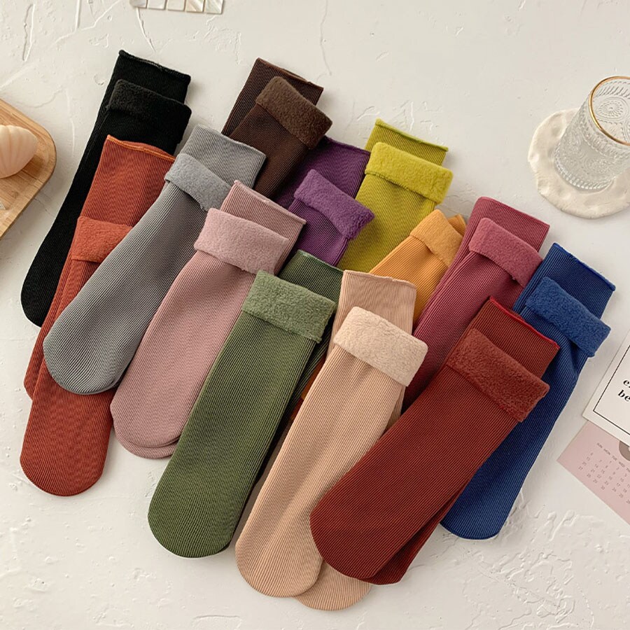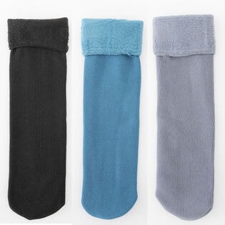 - 【3足セット】裏起毛ソックス 靴下 冷え取り靴下(ブラック+ブルー+ライトグレー)