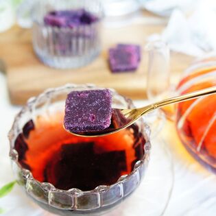 砂糖(国内製造)、水飴、黒糖、ブルーベリーピューレ(ブルーベリー、砂糖)/香料、着色料(赤色2号、黄色4号、青色1号)