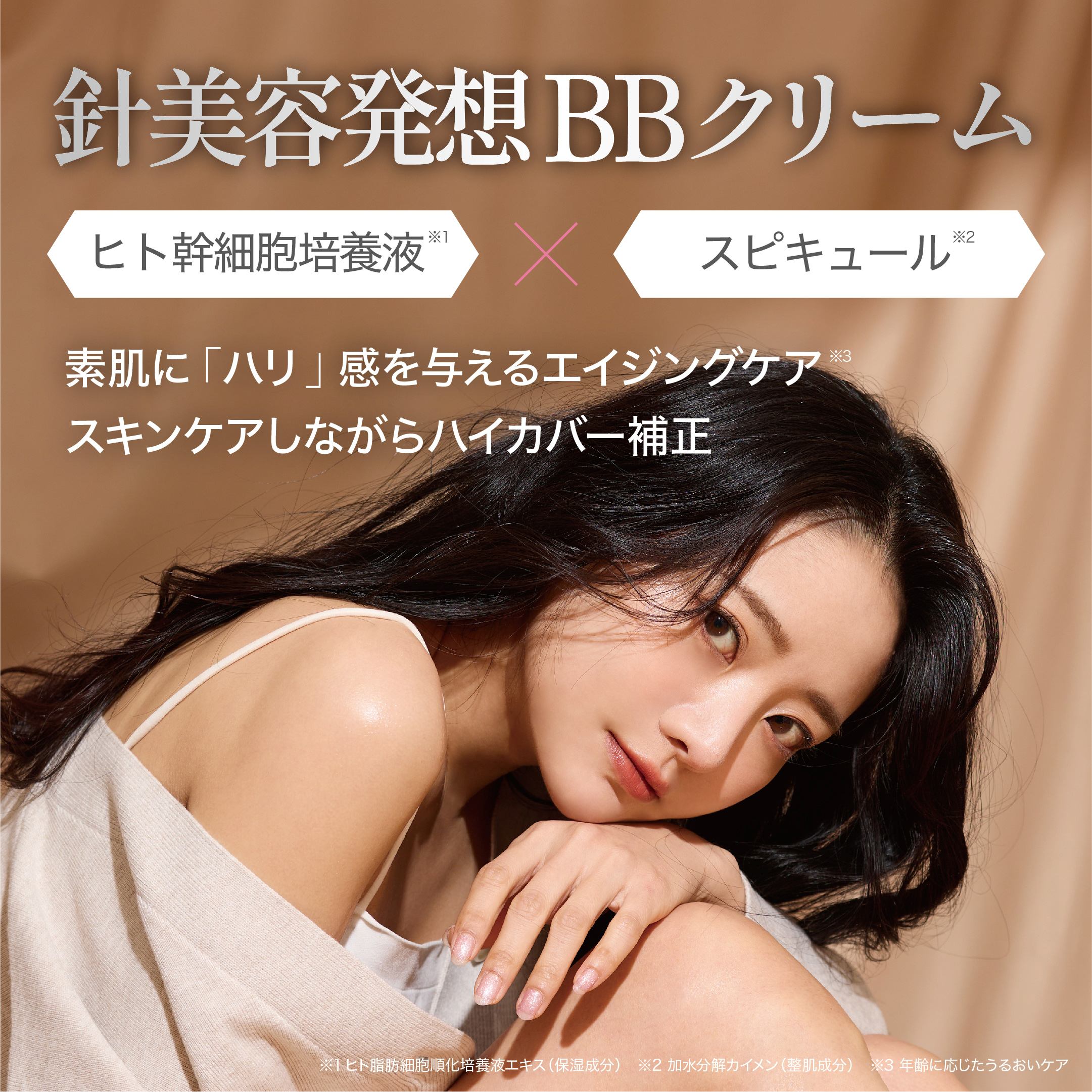 話題の「スピキュール」と「ヒト幹細胞エキス」配合の針美容発想のBBクリームでスキンケアしながら、ハイカバーメイクアップ。