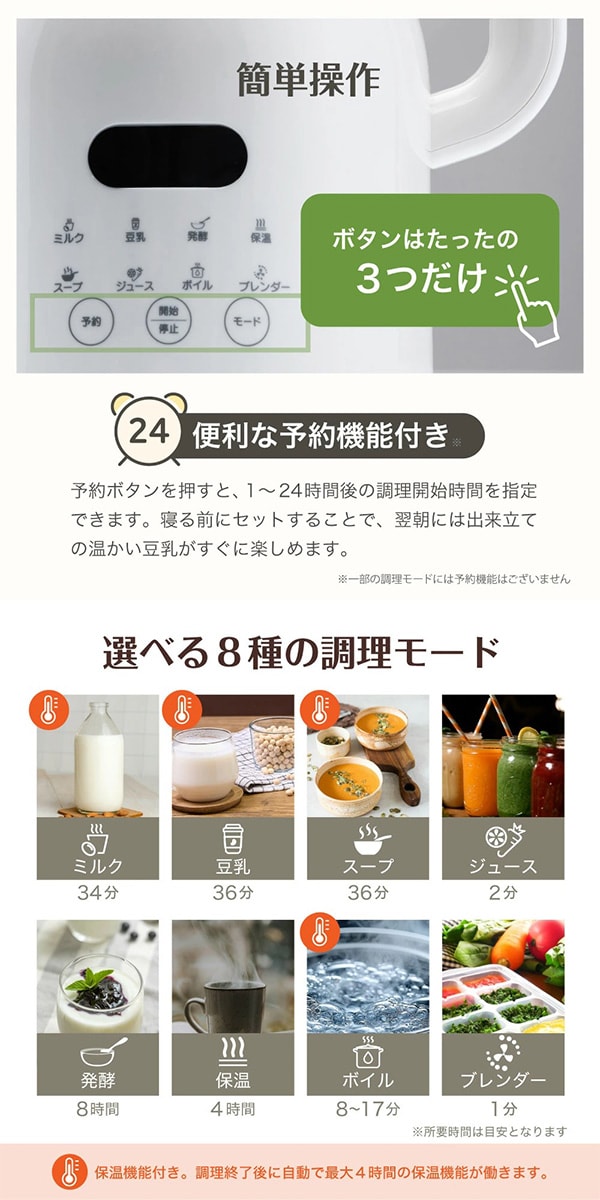 - Milcora 自家製豆乳メーカー(選べる8モード:スープ、発酵モードなど/10枚刃/レシピ付)