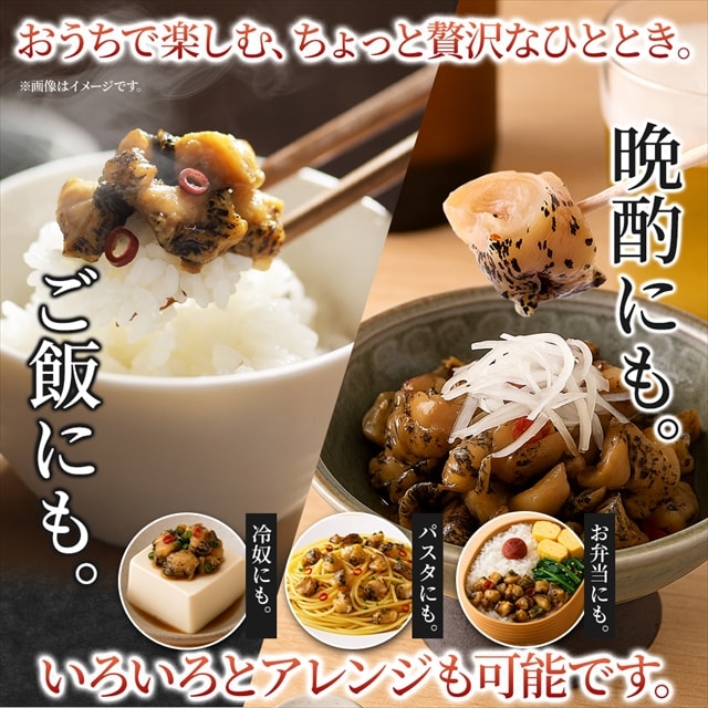 ほどよい歯ごたえに仕上げた一粒には、海の旨味がぎゅっと詰まっています。
